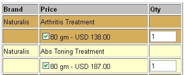 To order, tick the square 'checkbox' beside each product name and then enter the quantity desired. Once all required products are selected with quantity entered, click on the 'Check Out' icon at the bottom of the page and you will be at the 'Check Out Center'. An example :